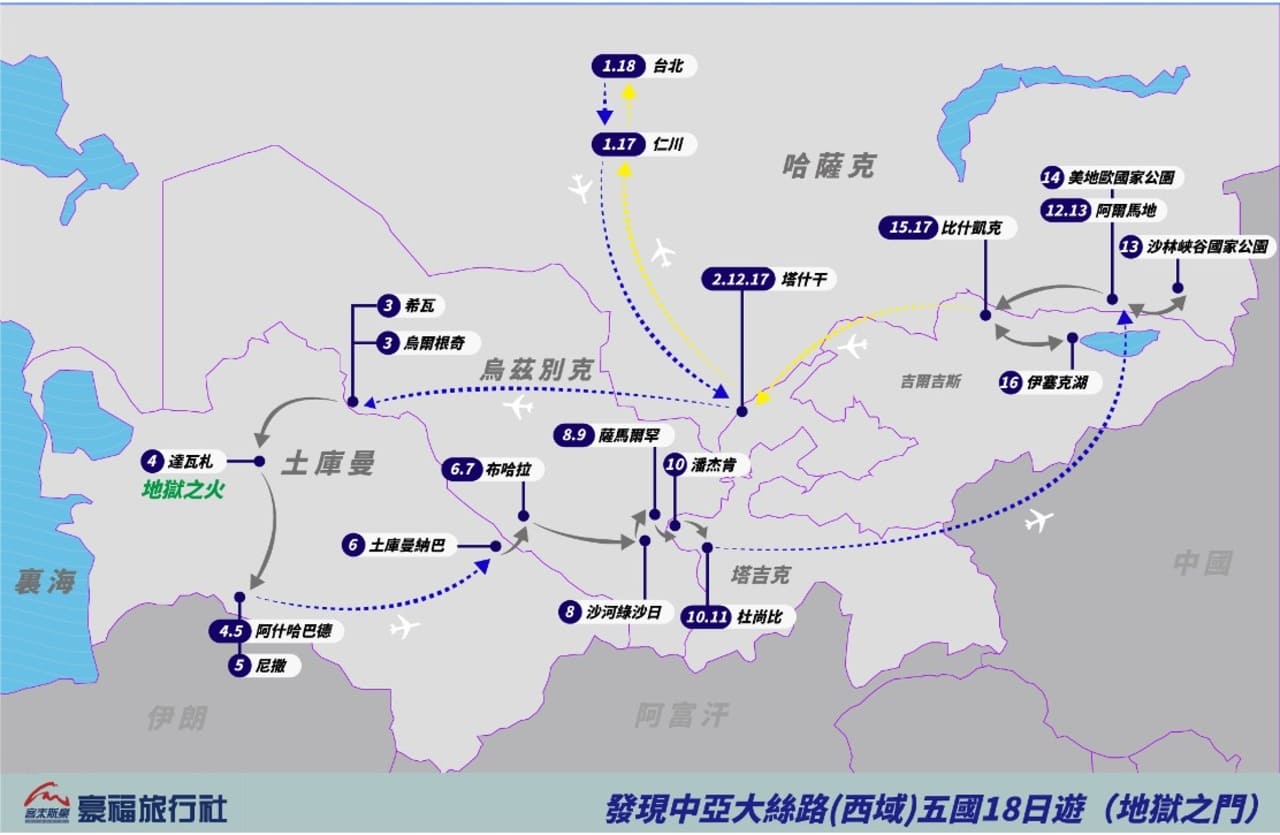 ◎完整走訪中亞絲路經典五國『烏茲別克、哈薩克、吉爾吉斯、土庫曼及塔吉克』: